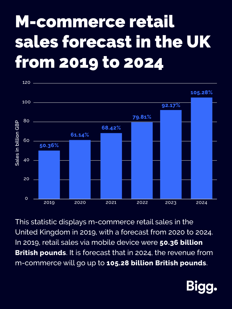 In 2022, mobiles accounted for a whopping 78% of all retail traffic in the UK and, as such, there is no denying the significance of mobile commerce (m-commerce) going forward. Thanks to branded shopping apps, high-speed data networks, and the allure of social shopping, it is now easier than ever for people to shop on the go using mobile devices.