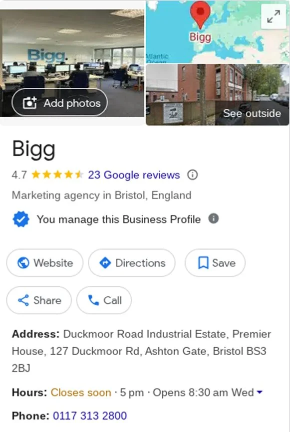 If you need more help with getting your local SEO strategy off the ground, Bigg is here to help! As a digital marketing agency based in Bristol, we specialise in getting businesses like yours noticed online through data-driven insights and an innovative approach to B2B marketing services. Get in touch with our expert team, and let’s put your business on the local map!