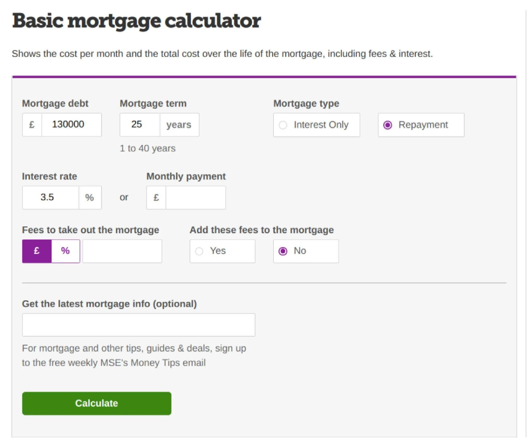 An excellent example of this is a mortgage calculator, like this one from Money Saving Expert, which provides technical financial information in an accessible format.