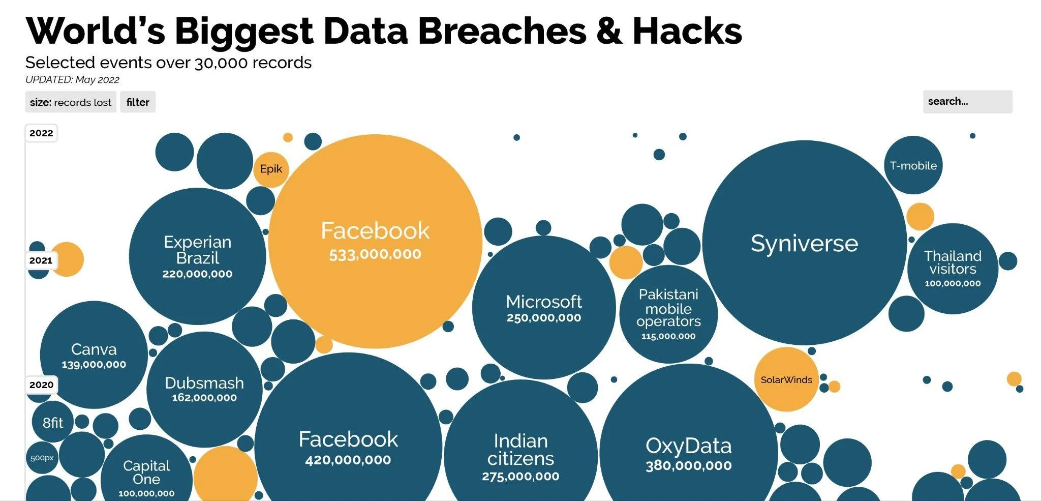 So, how do you stand out from the crowd? By going interactive! Interactive infographics take a concept that could work as a static piece of content and turn it into something immersive. Take this example from Information is Beautiful that visualises the world’s biggest data breaches.